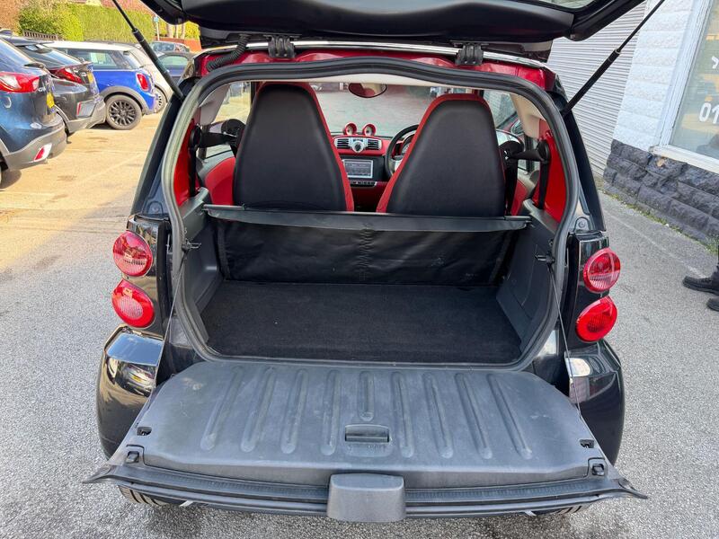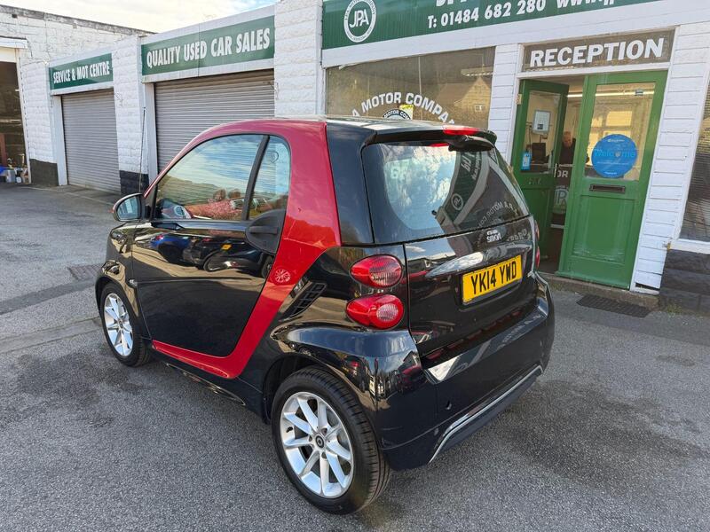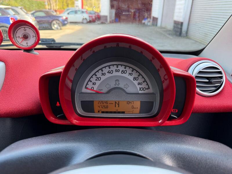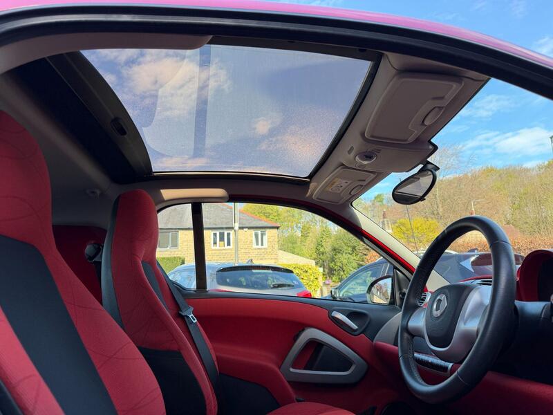 Here at JPA Motor Company we have this Well presented SMART ForTwo 1.0 MHD Passion Automatic in Black with Red Roof & Interior. A nice clean low mileage example. Just had a Full Service including Spark Plugs. MOT 19/04/2027. The key features of this vehicle are - Air Conditioning, Electric Windows, Panoramic Roof, Eco Mode, 15" Alloy Wheels. Please be advised that the original Infotainment system that is currently fitted is faulty. We have ordered a new unit with Apple Carplay/Android Auto to replace it with. 2 Keys